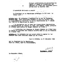 - Loi n° 93-023 du 31 décembre 1993 portant autorisation de ratification de perception des impôts et taxes et d’exécution des dépenses de l’État par Douzièmes Provisoires pour la Gestion 1994