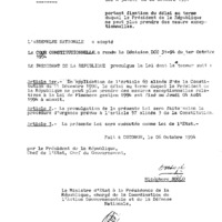 - Loi N° 94-012 du 6 octobre 1994 portant fixation du délai au terme duquel le Président de la République ne peut plus prendre des mesures exceptionnelles