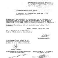 Loi n° 95-006 du 22 août 1995 portant autorisation de ratification de l’accord de coopération scientifique et culturelle entre le Bénin et l’Argentine.