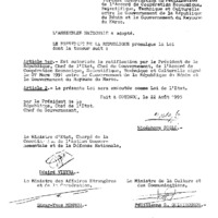 - Loi n° 95-008 du 22 août 1995 portant autorisation de ratification de l’accord de coopération économique, scientifique, technique et culturelle entre le Gouvernement du Bénin et le Gouvernement du Royaume du Maroc.