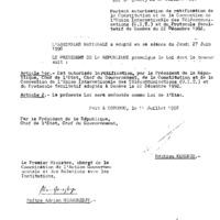 - Loi n° 96-013 du 02 juillet 1996 portant autorisation de ratification de la Constitution et de la Convention de l’Union Internationale des Télécommunications (U.I.T.) et du protocole facultatif de Genève du 22 Décembre 1992.