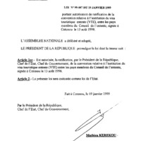 - Loi n° 99-007 du 19 janvier 1999 portant autorisation de ratification de la convention relative à l'institution du Visa touristique entente (VTE), entre les pays membres du Conseil de l'entente, signée à Cotonou le 13 août 1998