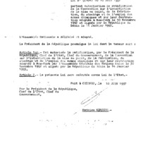 - Loi N° 97-017 du 10 juin 1997 portant autorisation de ratification de la Convention sur l’interdiction de la mise au point, de la fabrication, du stockage et de l’emploi des armes chimiques et sur leur destruction, adoptée à New-York le 30 novembre 1992 et signée par la République du Bénin le 14 janvier 1993