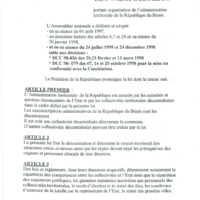 Loi N° 97-028 du 15 janvier 1999 portant organisation de l’administration territoriale de la République du Bénin