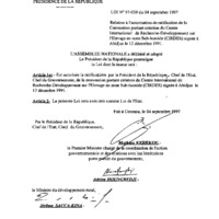 - Loi N° 97-039 du 4 septembre 1997 Loi relative à l’autorisation de ratification de la convention portant création du Centre international de recherche-développement sur l’élevage en zone Sub-humide (CIRDES) signée à Abidjan le 12 décembre 1991