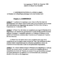 Loi organique N° 98-001 du 16 janvier 1998 relative à la Haute Cour de Justice