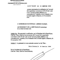 - Loi N° 98-003 du 16 janvier 1998 autorisant la ratification de l’accord de la quatrième convention ACP-CE de Lomé et de l’accord portant adhésion à la convention de l’Autriche, de la Finlande et de la Suède signés à Maurice le 04 novembre 1995