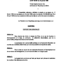 Loi N° 98-007 du 15 janvier 1999 portant régime financier des communes en République du Bénin