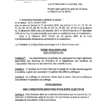 Loi n° 2000-18 du 3 janvier 2001 portant règles générales pour les élections en République du Bénin.