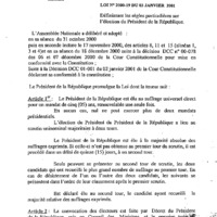 Loi n° 2000-19 du 3 janvier 2001 définissant les règles particulières pour l’élection du Président de la République.