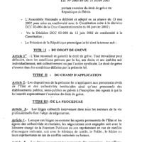 Loi n° 2001-09 du 21 juin 2001 portant exercice du droit de grève en République du Bénin.