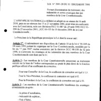 - Loi n° 2001-28 du 11 décembre 2001 portant détermination du traitement, des indemnités et autres avantages dus aux membres de la Cour Constitutionnelle.