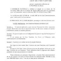 Loi n° 2001-37 du 27 août 2002 portant organisation judiciaire en République du Bénin