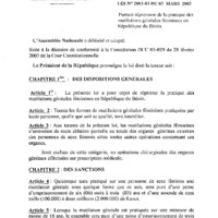 Loi n° 2003-03 du 3 mars 2003 portant répression de la pratique des mutilations génitales féminines en République du Bénin.