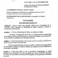 Loi n° 2003-17 du 11 novembre 2003 portant orientation de l’éducation nationale en République du Bénin.